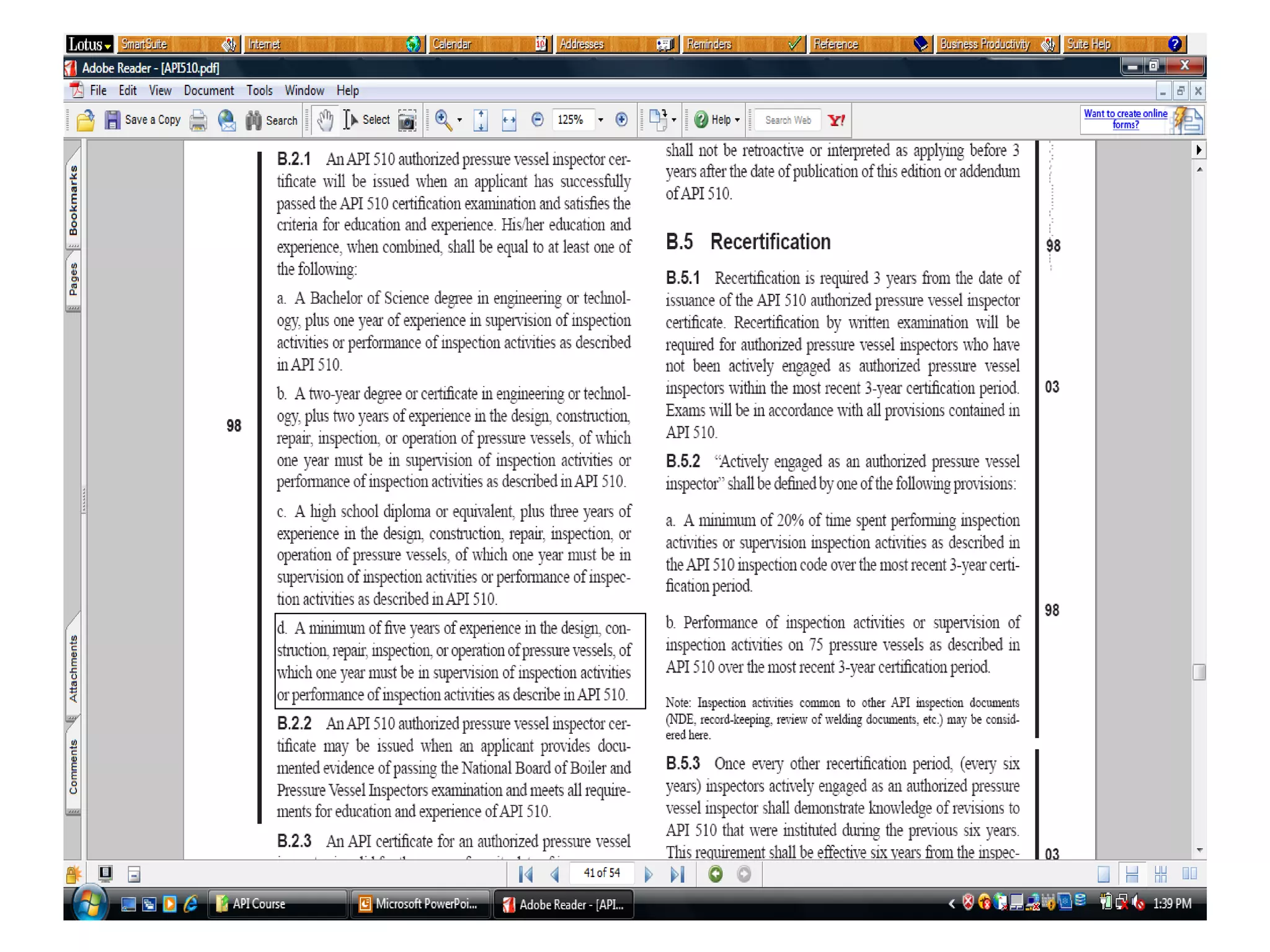 4.2 API Authorized Pressure Vessel Inspector Qualification and