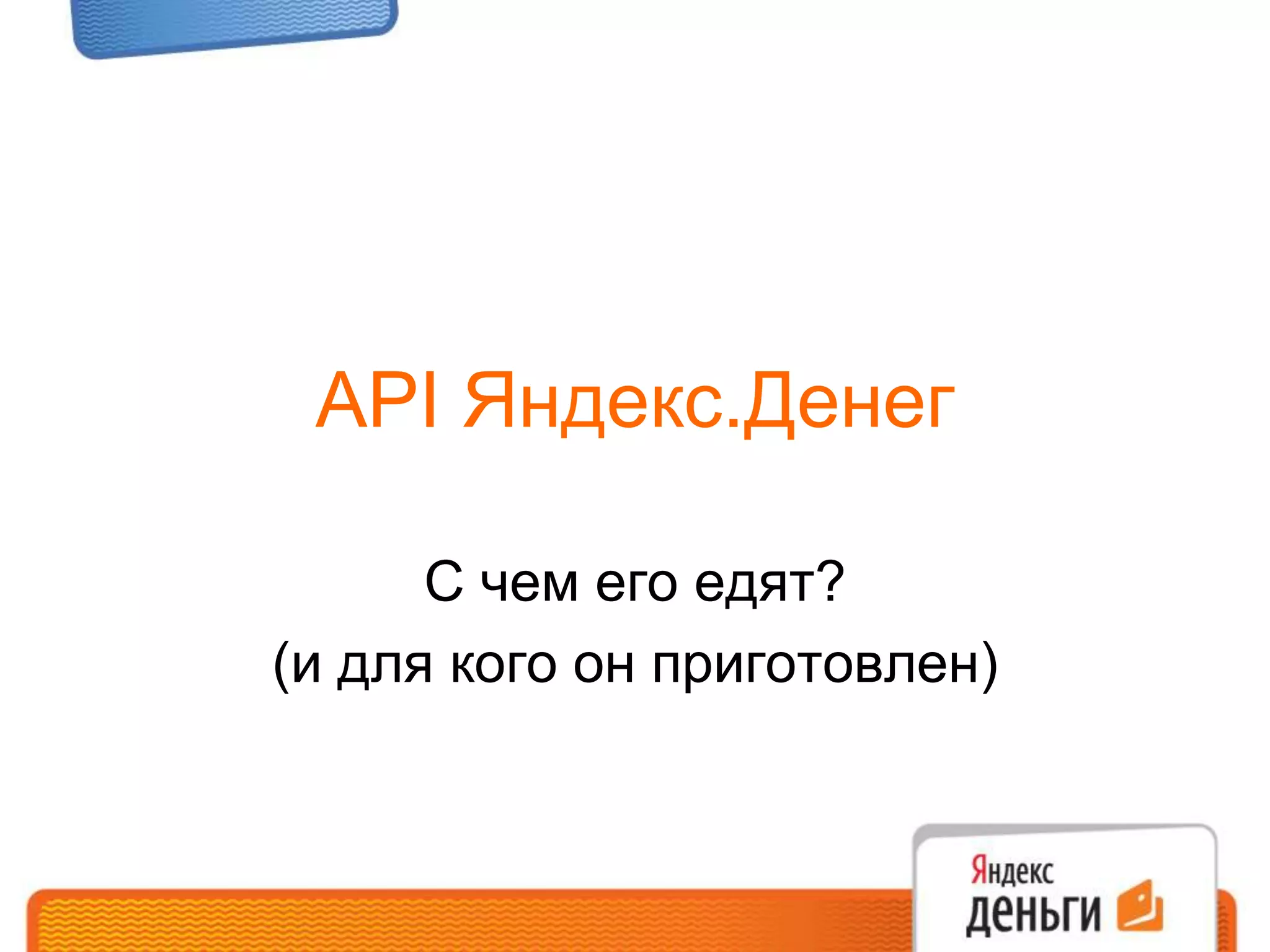 Документ описывает API Яндекс.Денег, его функции и преимущества для разработчиков и пользователей. Рассматриваются разные виды платежей, возможности по управлению кошельком и поддержка экономии времени. Обращается внимание на необходимость ознакомиться с документацией и подключить API к собственному сервису.