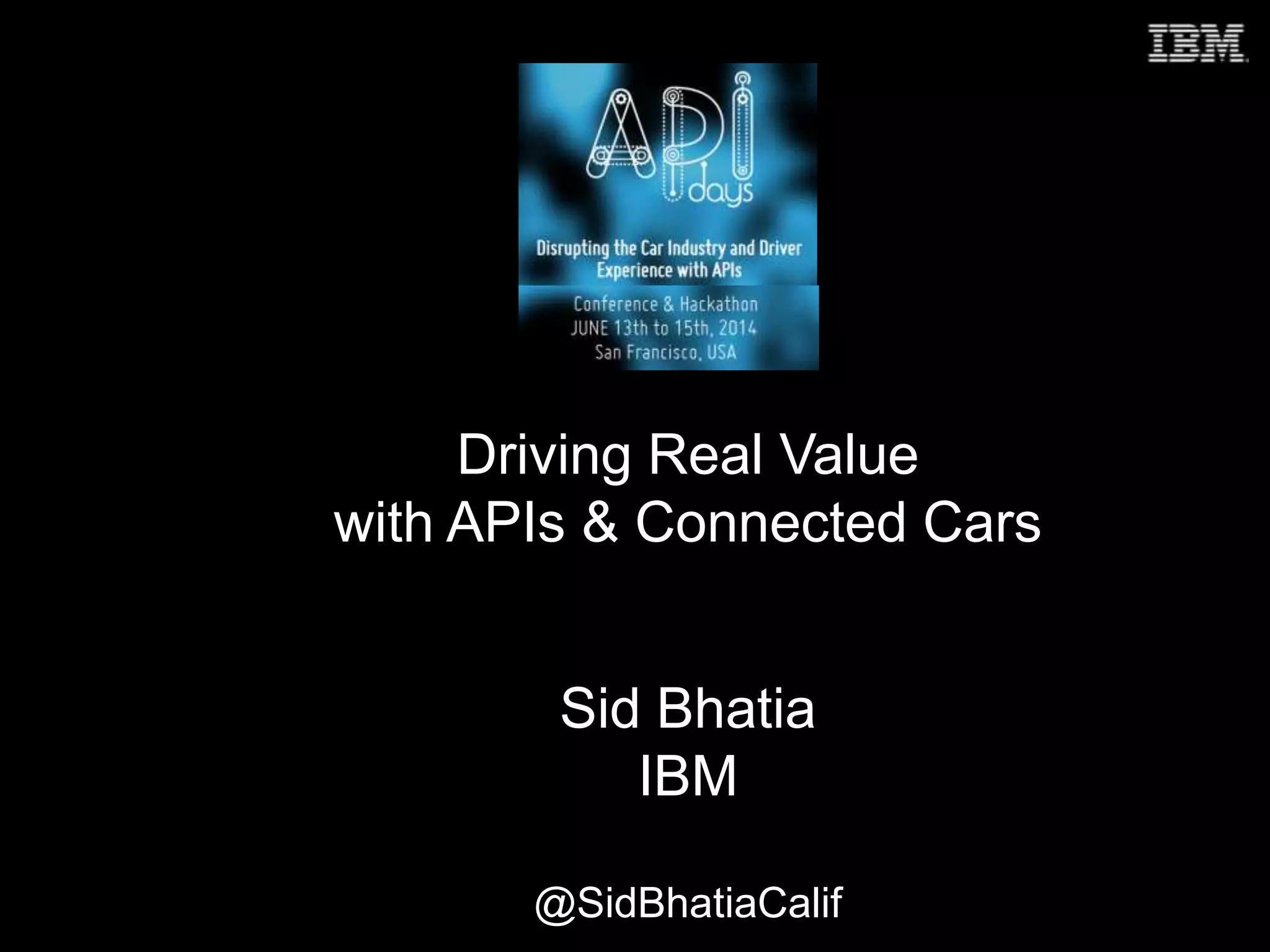 This document discusses how connected cars and APIs will drive value by 2020: