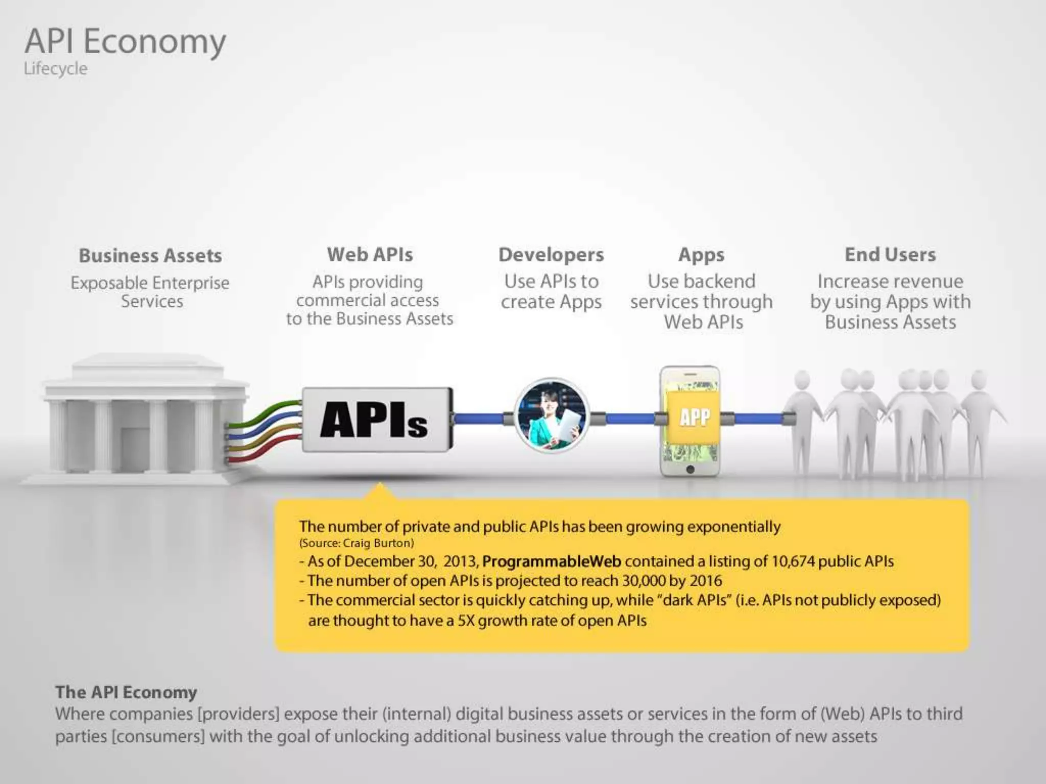The document discusses the emergence of APIs and API management. It describes how APIs are being used across many industries to expose services and data to external developers, driving innovation. Effective API management is needed to govern API usage and foster development of new applications. The document outlines various API models, roles, and best practices for API management.