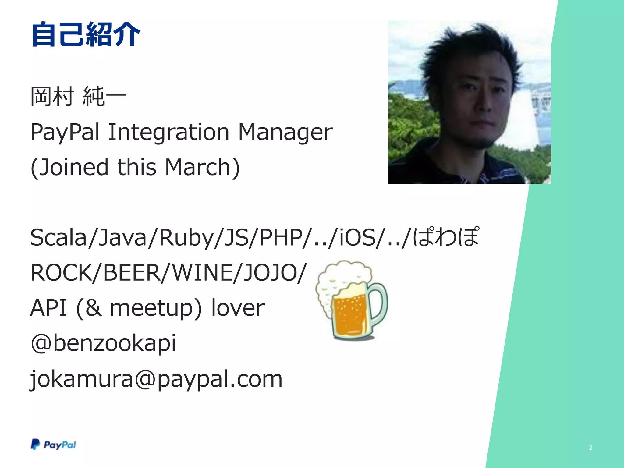For merchants, as we have been promoting this past year here in Japan is our ability to help small and medium businesses or SMBs, and startups to go from not only “zero to one” but to millions through our smb friendly products and services. I wont go into the details but these are our core values and it is exactly why we are considered to be the global standard in e-commerce with 162 Million people and businesses around the world are using PayPal to not only pay but to accept payments.