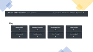 The document outlines the top API security challenges, including broken object level authorization, excessive data exposure, and security misconfiguration. It presents specific examples of vulnerabilities, such as a case involving Uber's API, and emphasizes the importance of proper authentication and authorization mechanisms. Additionally, it mentions strategies for securing APIs based on recommendations by industry experts.