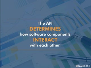 This document discusses API testing and answers three common questions about API testing. It first defines what an API is and how it allows software components to interact. It then explains that API testing ensures the functionality of both the API and application code. The three questions answered are: 1) What are the benefits of API testing? 2) How to automate API testing? 3) What are some best practices for API testing? The document provides details on easily testing core functionality, language integration, automation approaches, and best practices like layered architecture and data parsing support.