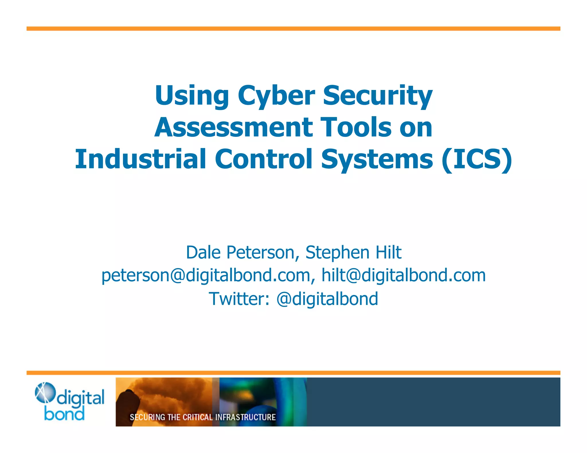 The document discusses the use of cybersecurity assessment tools on Industrial Control Systems (ICS), emphasizing Digital Bond's expertise in performing thorough security assessments since 2000. It outlines various assessment types, the importance of secure configuration, and risk reduction strategies while highlighting issues with ICS protocols that are insecure by design. Additionally, it provides detailed guidance on scanning methodologies, specific tools like Nessus, and effective patch management practices tailored for ICS environments.