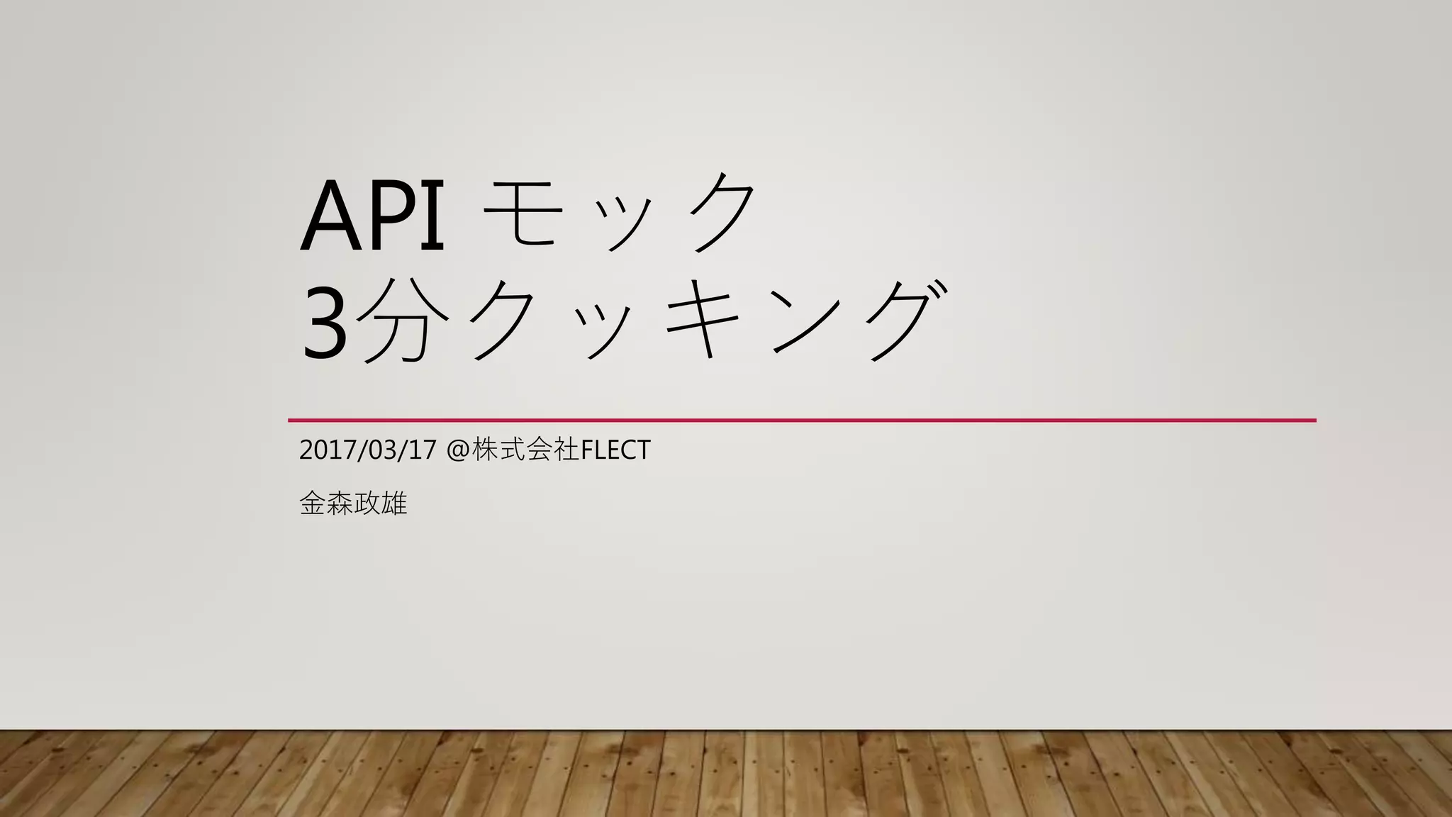 https://connpass.com/event/52103/ こちらのイベントのLT資料です。 http://dev.classmethod.jp/cloud/aws/apigateway_mock_dev/ クラウドメソッドさんのブログでも取り上げていただきました。