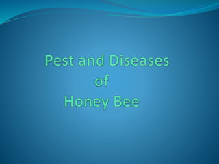 The document discusses the significance of honey bees in agriculture and their role in pollination, highlighting that they are responsible for 80% of the pollination of crops which constitute one-third of the human diet. It also provides an overview of beekeeping practices globally and in India, including the types of honey bee species, management techniques, benefits of beekeeping, and challenges faced by the industry. Furthermore, it highlights the economic potential of beekeeping for rural development and emphasizes the need for increased awareness, technical support, and disease management in the sector.