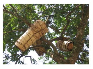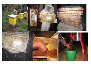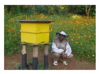This document provides an introduction and overview of beekeeping and bee diseases in Ethiopia. It discusses key terms related to apiculture and beekeeping. Ethiopia has over 10 million bee colonies and potential to produce 500,000 tons of honey and 50,000 tons of beeswax annually. Beekeeping faces challenges like diseases, lack of skills and equipment, and climate change, but also opportunities from indigenous knowledge, demand for products, and government support. Beekeeping is important for nutrition, income, jobs, and crop pollination, which increases yields. There are three main types of beekeeping: traditional using natural materials, transitional using basic manufactured hives, and improved using standardized box hives.
