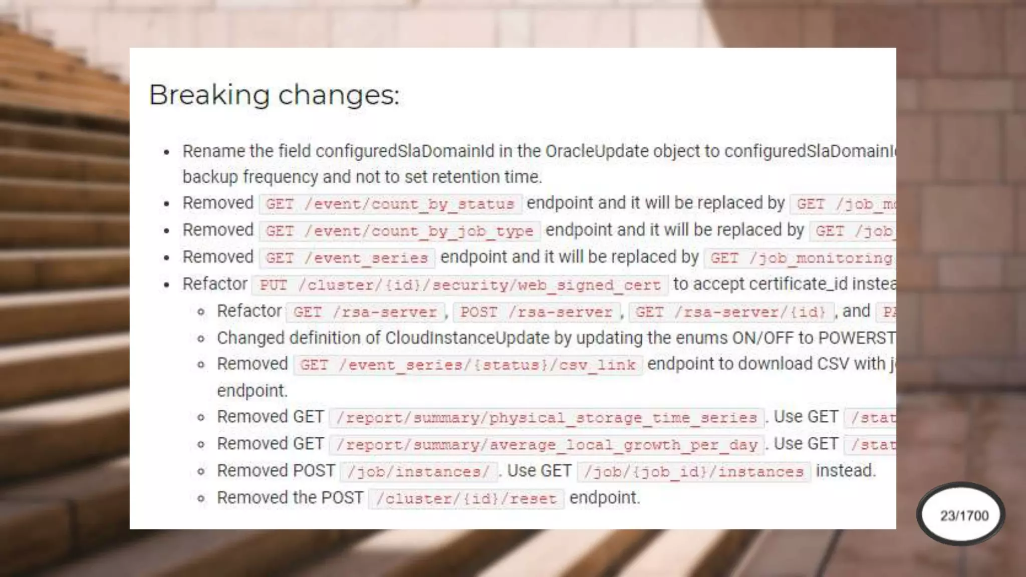 The document outlines challenges and solutions related to discovering API version differences, focusing on various tooling and automation techniques. It highlights the importance of changelogs, reports on breaking changes, and the goal of generating comprehensive reports on version diffs and SDK changes. Key components include a comparison framework, use of OpenAPI specifications, and different roles involved in the process.