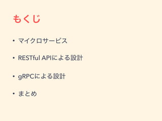 1. The document discusses RESTful APIs and gRPC, comparing their characteristics and use cases.