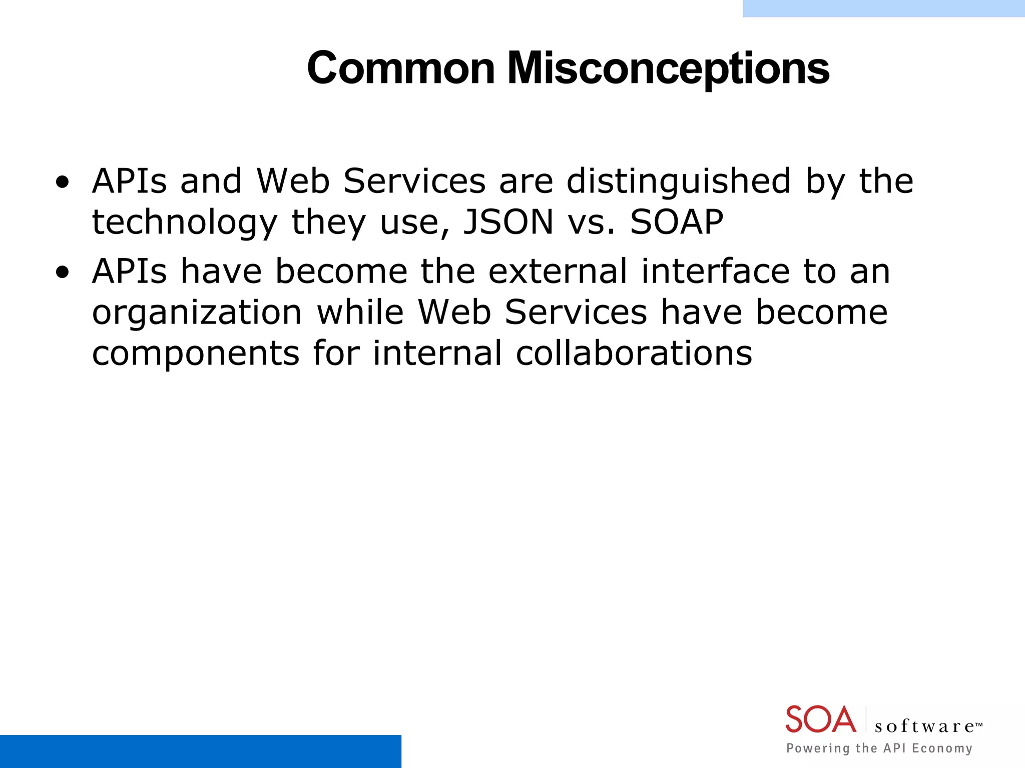 This document discusses the differences and relationships between APIs and web services. It argues that APIs are a superset of web services and the distinction is based more on business needs than technology. A single platform is needed to handle all aspects of API and service management, including publication, mediation and integration, monitoring and remediation, and lifecycle management regardless of the underlying protocols and standards used. Such a platform provides flexibility to support multiple protocols while simplifying development and management of APIs and services across their lifecycle.
