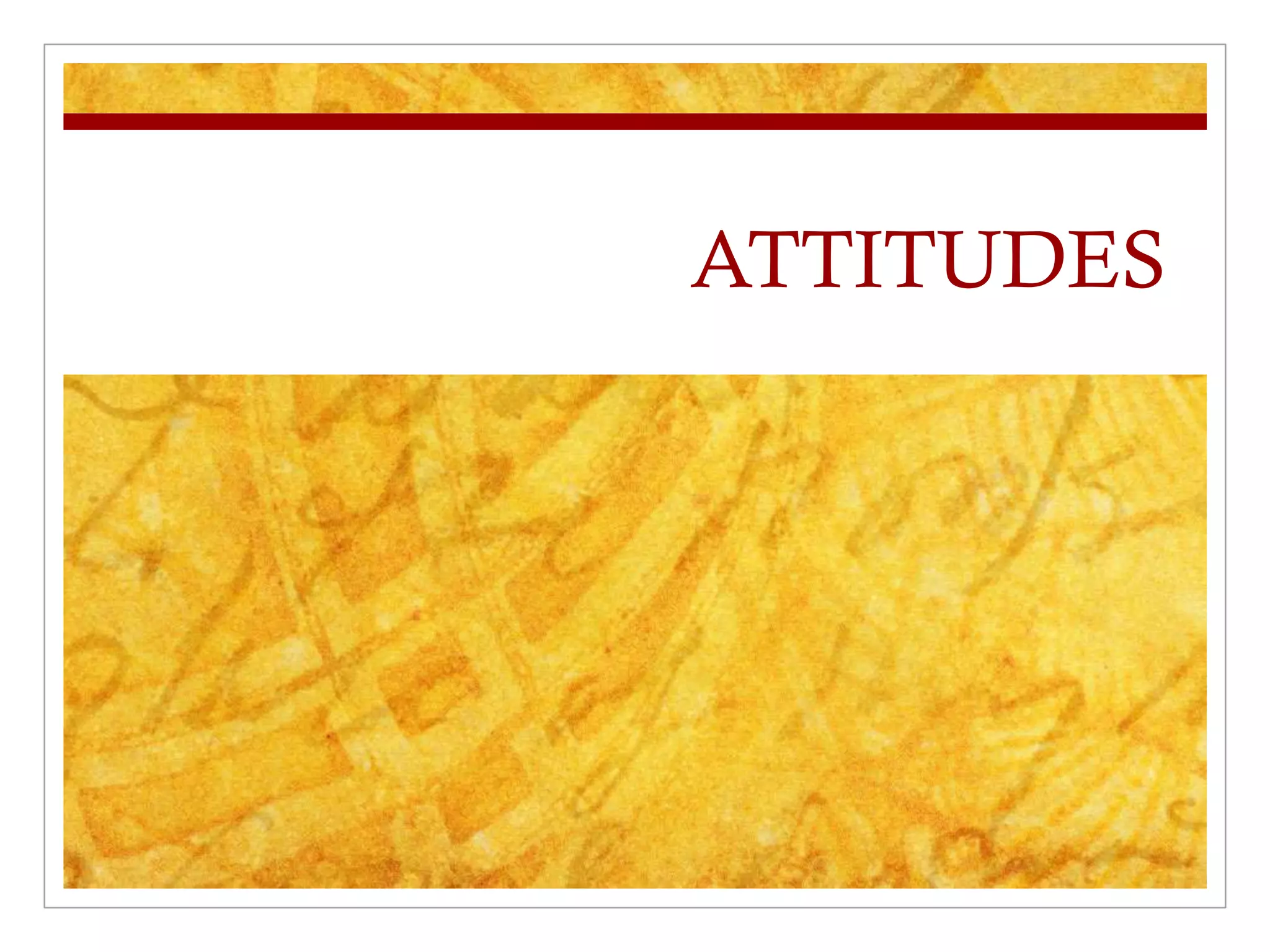 The document defines attitudes as an overall evaluation of an object based on cognitive, affective, and behavioral components. Attitudes involve thoughts, feelings, and past behaviors toward the object. They serve functions such as helping understand the world, achieving goals, protecting self-image, and expressing values. The components are related but not always aligned in valence. Attitudes are influenced by beliefs, attributes, and experiences with the object.