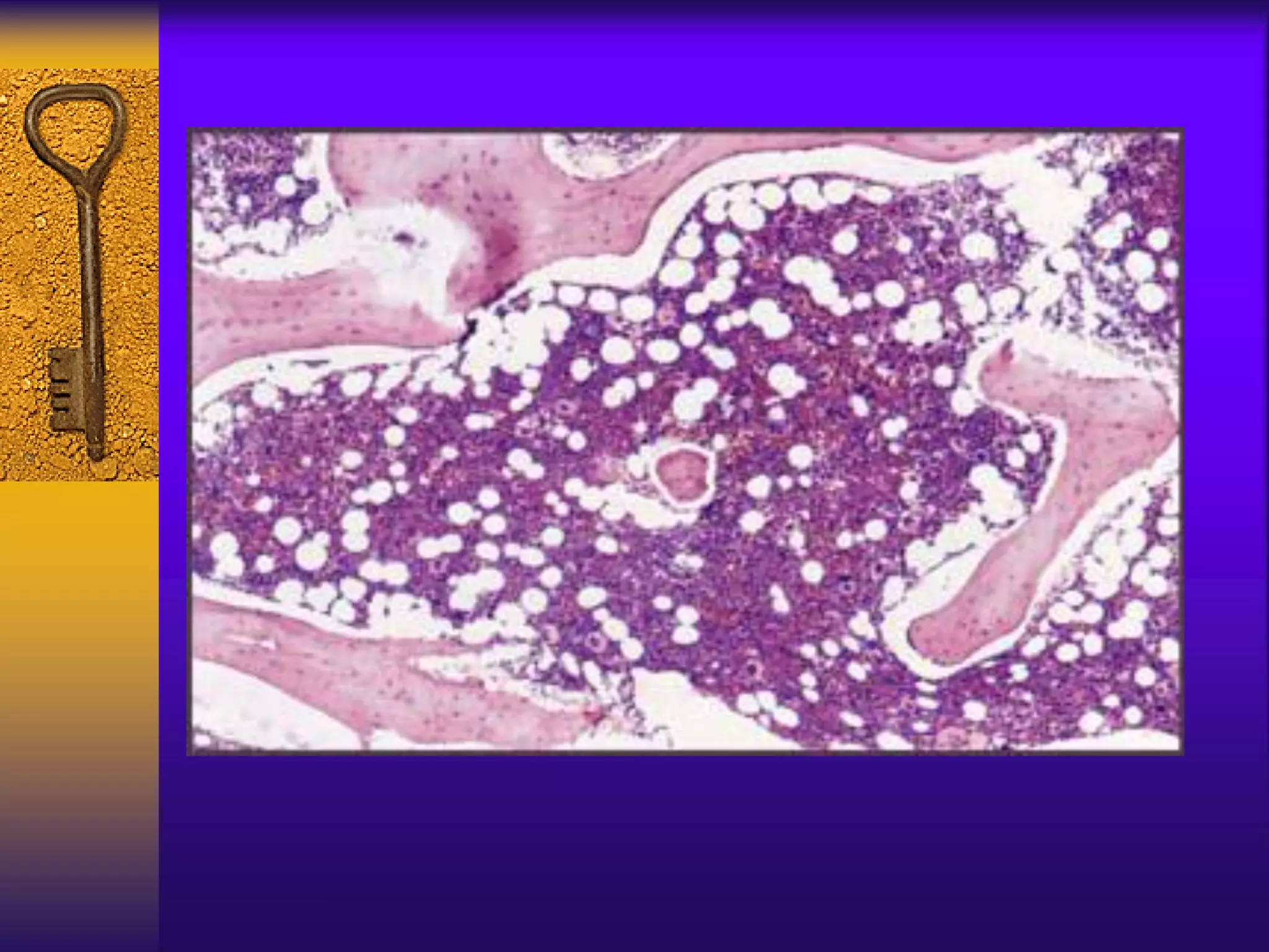 2. It can be caused by exposure to toxins, radiation, viruses, or immune system attacks on the bone marrow. The bone marrow is hypocellular with fatty replacement of hematopoietic tissue.