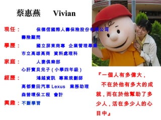 蔡惠燕是一位在保德信国际人寿工作的寿险顾问,拥有丰富的专业背景和多项奖励。保德信金融集团成立于1875年,是美国最大的保险公司之一,以优良的经营和服务在行业中享有声誉。文档还详细列出了寿险的重要性和相关费用的规划,以确保家庭的未来安全。