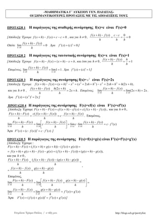 ΠΡΟΤΑΣΗ 1 Η παράγωγος της σταθερής συνάρτησης f(x)=c είναι f′(x)=0