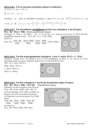 ΠΡΟΤΑΣΗ 9 Για δύο ενδεχόµενα Α και Β ενός δειγµατικού χώρου ισχύει: