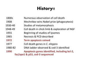 1. Apoptosis is a tightly regulated process of programmed cell death that involves the activation of caspases and degradation of nuclear and cellular components.