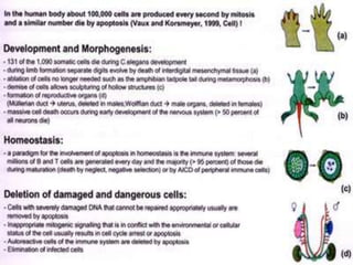 - The significance of apoptosis in development and maintenance of tissues by removing excess or damaged cells.