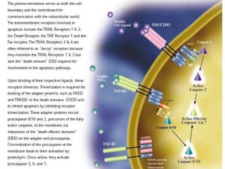 - The molecular mechanisms including caspase signaling pathways like the intrinsic pathway involving mitochondria and the extrinsic pathway involving death receptors.