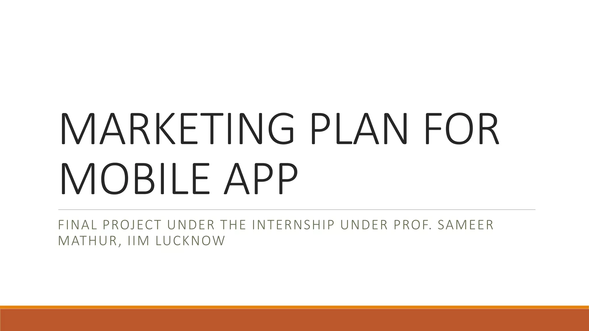 This document proposes a marketing plan for a mobile app that aims to increase transparency and reduce costs in India's healthcare system. It will allow patients to get second medical opinions, compare prices for procedures from registered hospitals and clinics through competitive bidding, and choose their preferred provider. The goals are to direct 10% of India's annual healthcare spending through the app within 5-8 years by creating a collaborative ecosystem between patients and providers. Key strategies include incentivizing existing players to participate, growing the patient base through targeted advertising, and gradually expanding statewide.