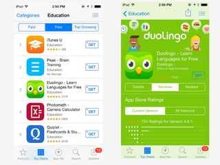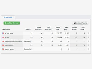 App Store Optimization (ASO) is crucial for improving a mobile app's visibility in app stores. The document provides a comprehensive checklist covering competition research, keyword strategy, app title, description, icon design, screenshots, video previews, and localization to enhance download rates. It emphasizes the importance of good ratings and reviews as well as tools for effective ASO management.