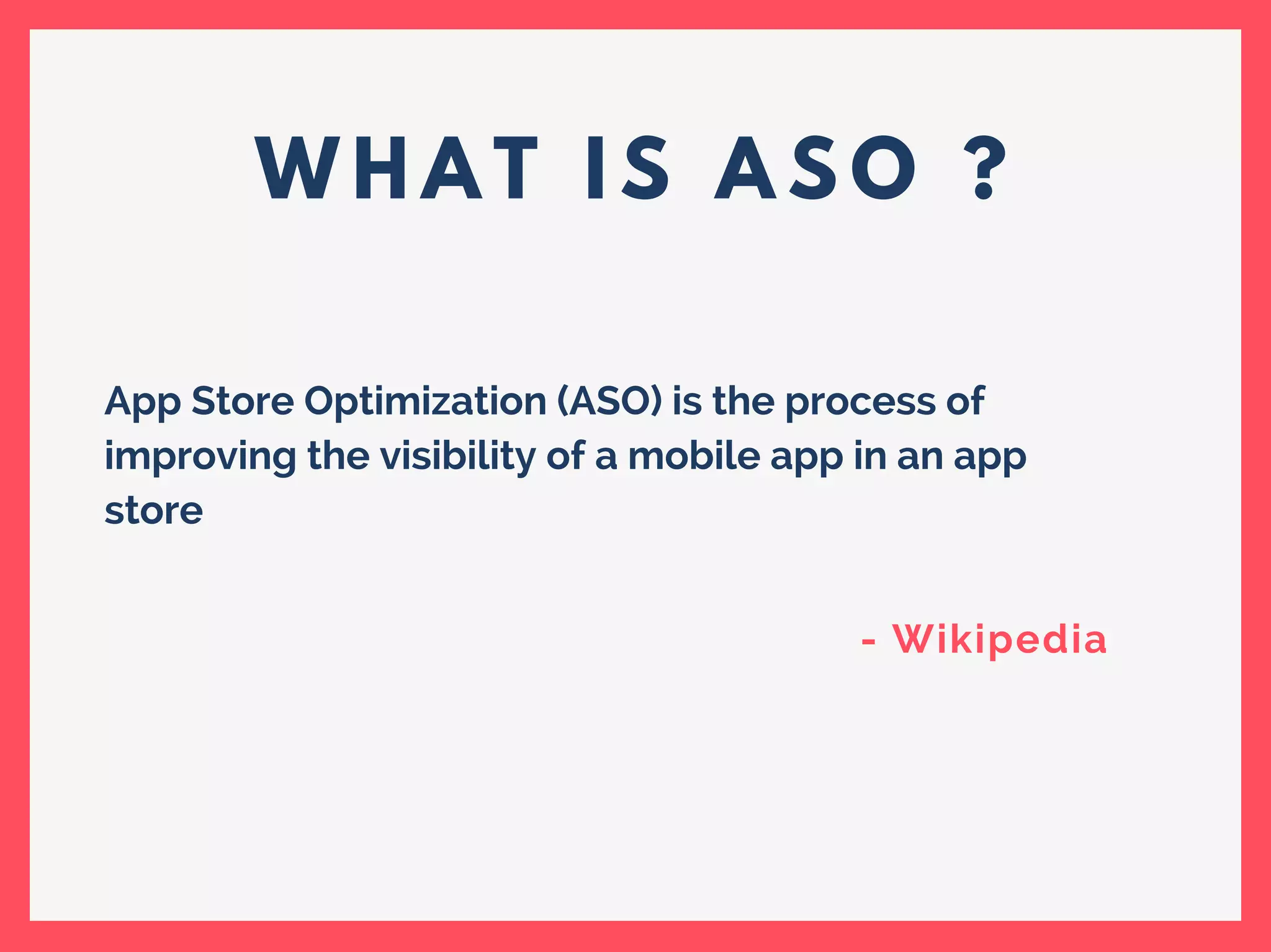 App Store Optimization (ASO) is crucial for improving a mobile app's visibility in app stores. The document provides a comprehensive checklist covering competition research, keyword strategy, app title, description, icon design, screenshots, video previews, and localization to enhance download rates. It emphasizes the importance of good ratings and reviews as well as tools for effective ASO management.