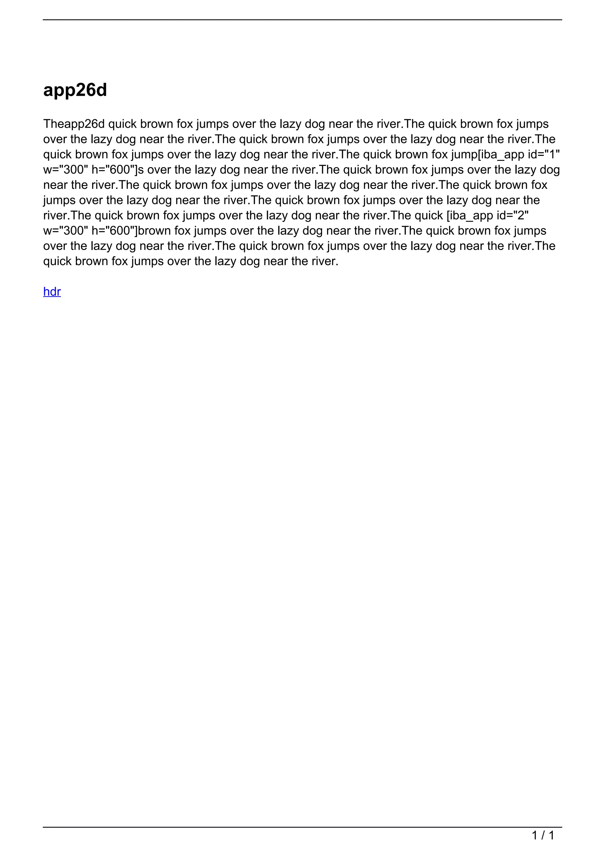 The document repeatedly describes a quick brown fox jumping over a lazy dog near a river. The fox jumps over the dog by the river in several sentences throughout the text. Some sentences contain additional elements like identifiers for apps but continue the core description of the fox and dog by the river.
