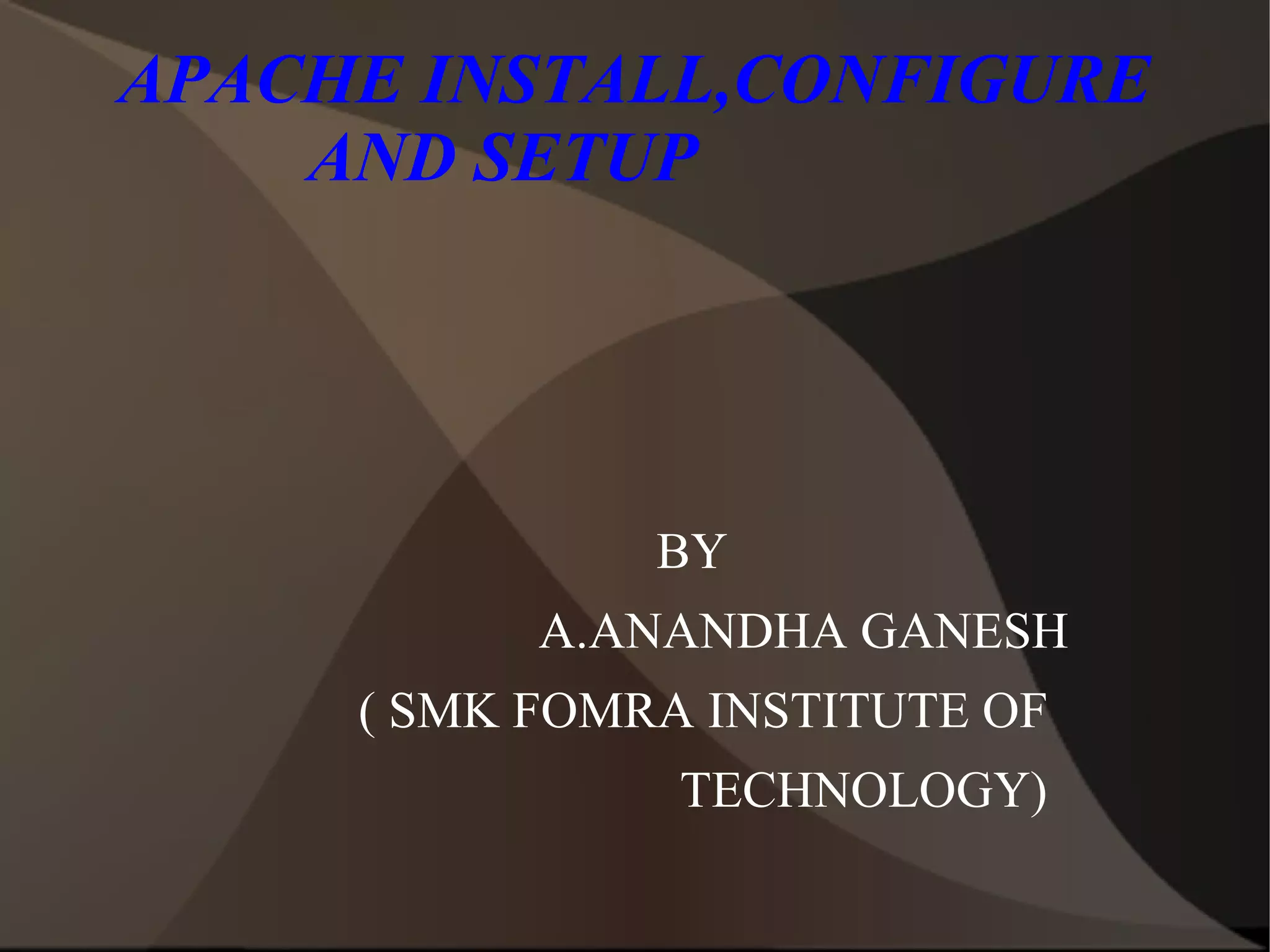 The document provides instructions for installing, configuring, and setting up the Apache web server on Linux systems. It explains what Apache is, where to get it, how to compile it from source or install pre-built binaries, how to configure the httpd.conf file, some of its main features like security controls, and finally provides a quick start guide with step-by-step instructions for compiling and installing Apache from source.
