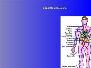 L'apparato circolatorio è composto da vasi sanguigni che trasportano il sangue attraverso arterie, vene e capillari. Le arterie portano sangue ossigenato dal cuore, mentre le vene riportano il sangue deossigenato al cuore. Il cuore, un muscolo involontario, è diviso in quattro cavità, permettendo la circolazione del sangue nel corpo.
