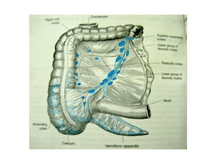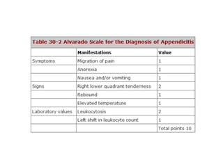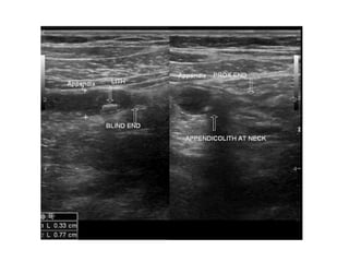 The document discusses the anatomy, physiology, pathology, diagnosis and treatment of appendicitis. It provides details on: