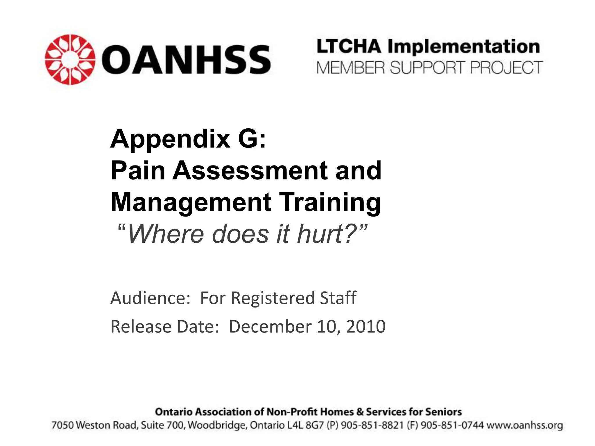 This document outlines a training program aimed at improving pain assessment and management for elderly residents in care facilities. It discusses myths about pain in the elderly, the types and pathways of pain, and provides guidelines for effective pain assessment and treatment strategies, both pharmacological and non-pharmacological. The document emphasizes the importance of monitoring pain in seniors, highlights indicators for assessment, and includes case studies for practical application.