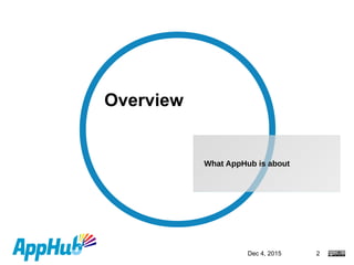 The AppHub project, funded by the EU's Horizon 2020 program, aims to facilitate the delivery of open source software (OSS) by bridging the gap between OSS SMEs and the mainstream market. The initiative focuses on addressing challenges such as quality management, community involvement, and project documentation to improve OSS adoption. AppHub provides resources and a framework to promote best practices in OSS development and management.