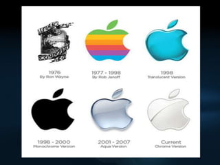 This document provides a brief history of Apple and its founders and key products. It mentions Steve Jobs and Steve Wozniak founding Apple and creating the Apple I and Apple II computers. It then lists the Macintosh, Next Inc, NeXTstation, iMac, iPod, and iPad as important Apple products and innovations over the years that helped drive the company's success.