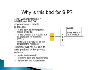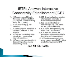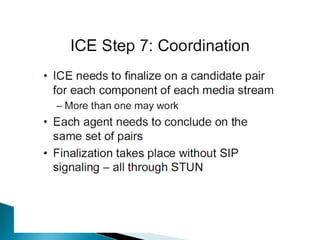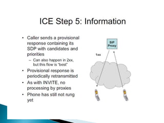 The document describes a video calling software application that operates exclusively on Apple devices using VoIP protocols such as SIP, with supporting technologies like STUN, TURN, and ICE for traversing networks. It details the call setup procedure, the methods used in SIP for managing sessions, and the underlying network interactions involved in establishing a connection. Additionally, it covers the use of RTP for real-time data transmission and the algorithmic processes involved in connecting users via NAT techniques.