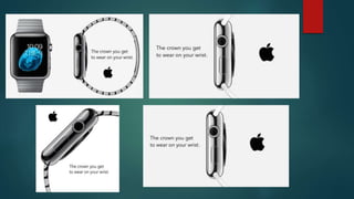 The document outlines Apple's marketing plan for the Apple Watch II. It discusses the target demographics for Apple Watch consumers and different Apple Watch models. The marketing plan proposes a balanced marketing mix including advertising, direct marketing, sales promotions, public relations, and social media strategies. Key tactics proposed include a "Digital Crown" advertising campaign with TV, magazine, and online ads. A direct marketing strategy would target Apple's customer list with banner ads. A sales promotion offering $50 off watch accessories is suggested to boost short-term sales. An exclusive Apple Watch launch event is proposed for public relations.