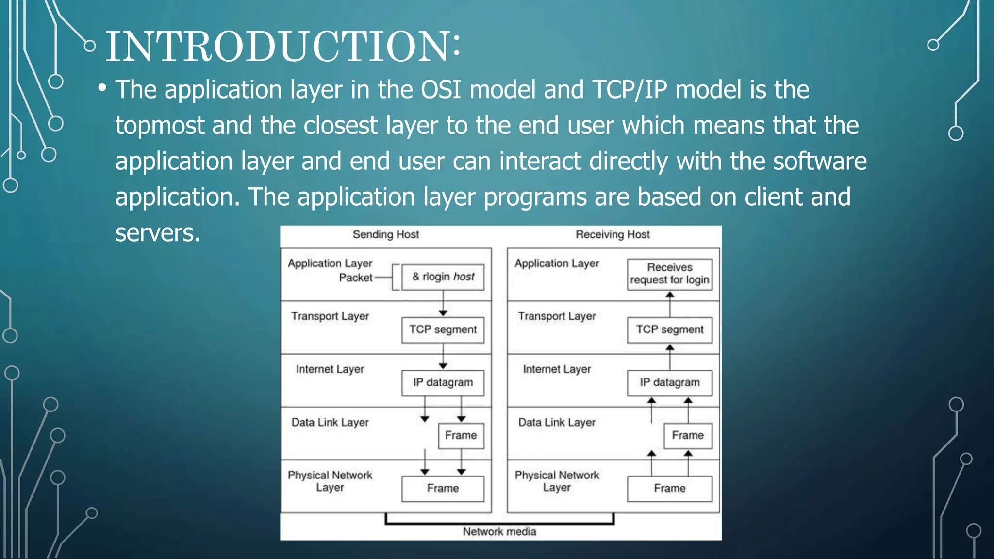 The document provides an overview of application layer protocols in the OSI and TCP/IP models, highlighting their functions, such as remote logins, file management, and email services. It details common protocols like HTTP, HTTPS, DNS, FTP, and TFTP, explaining their roles in data communication, security features, and operational mechanisms. The application layer is essential as it directly interfaces with end-user applications, facilitating various types of network communication.