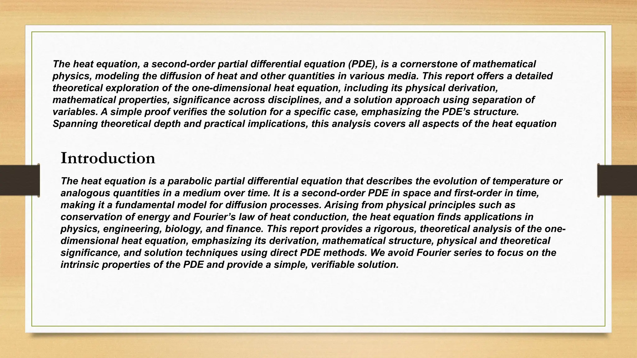 The heat equation,a second-order partial differential equation (PDE), is a cornerstone of mathematical