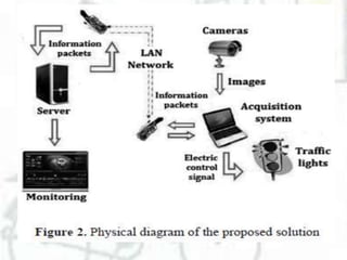 The document outlines the development of a smart traffic light controller using fuzzy logic to improve traffic management at intersections. It highlights advantages such as reduced waiting times, increased vehicular throughput, and decreased accidents by adapting to real-time traffic conditions. Future enhancements could involve integrating the system with a database for improved traffic information management.