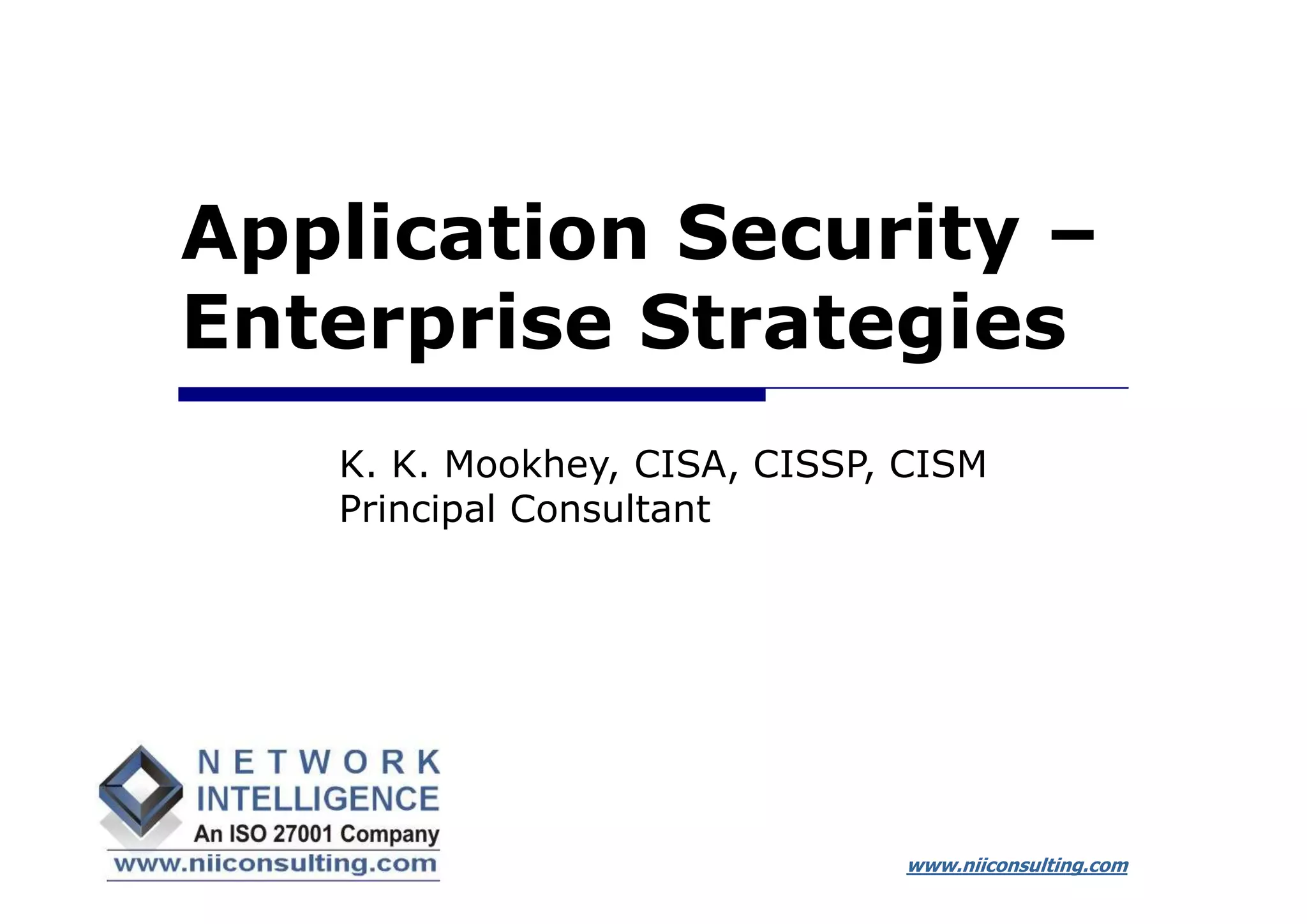 The document discusses application security strategies for enterprises. It summarizes a talk on the biggest hack in history that stole over 200 million credit card numbers. The hacker used SQL injection to hack retail websites and steal card data. It then discusses how application vulnerabilities can be exploited and the high costs of data breaches for companies. The rest of the document outlines a holistic solution to application security that includes secure design, development, testing, training and management.