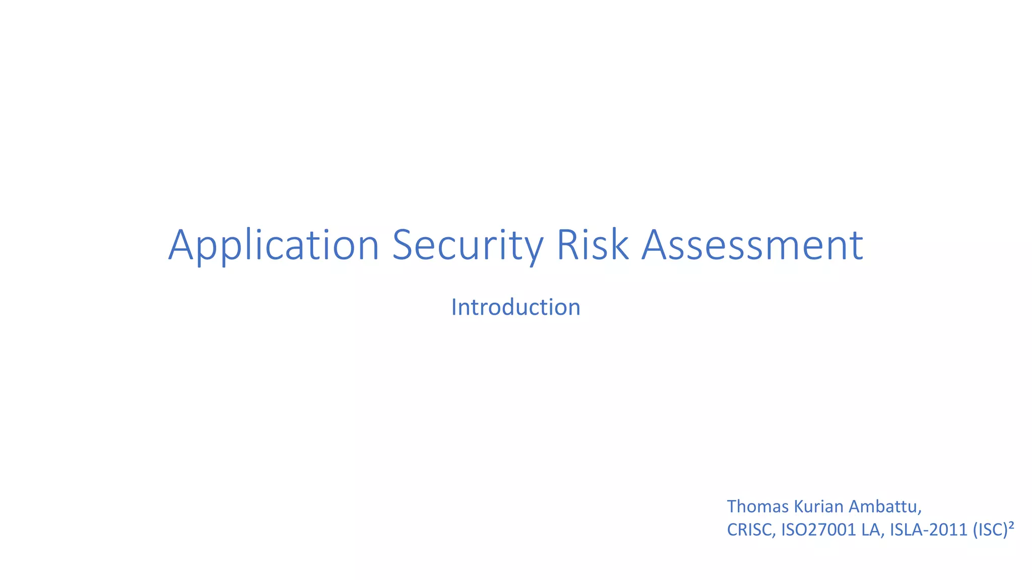 The document discusses the importance of conducting application security risk assessments throughout the Software Development Life Cycle (SDLC) to identify and mitigate risks. It highlights key strategies, including threat modeling during the design phase, secure code reviews during development, and security testing during the testing phase. Continuous risk assessment is emphasized as a critical process to ensure vulnerabilities are addressed before software release.