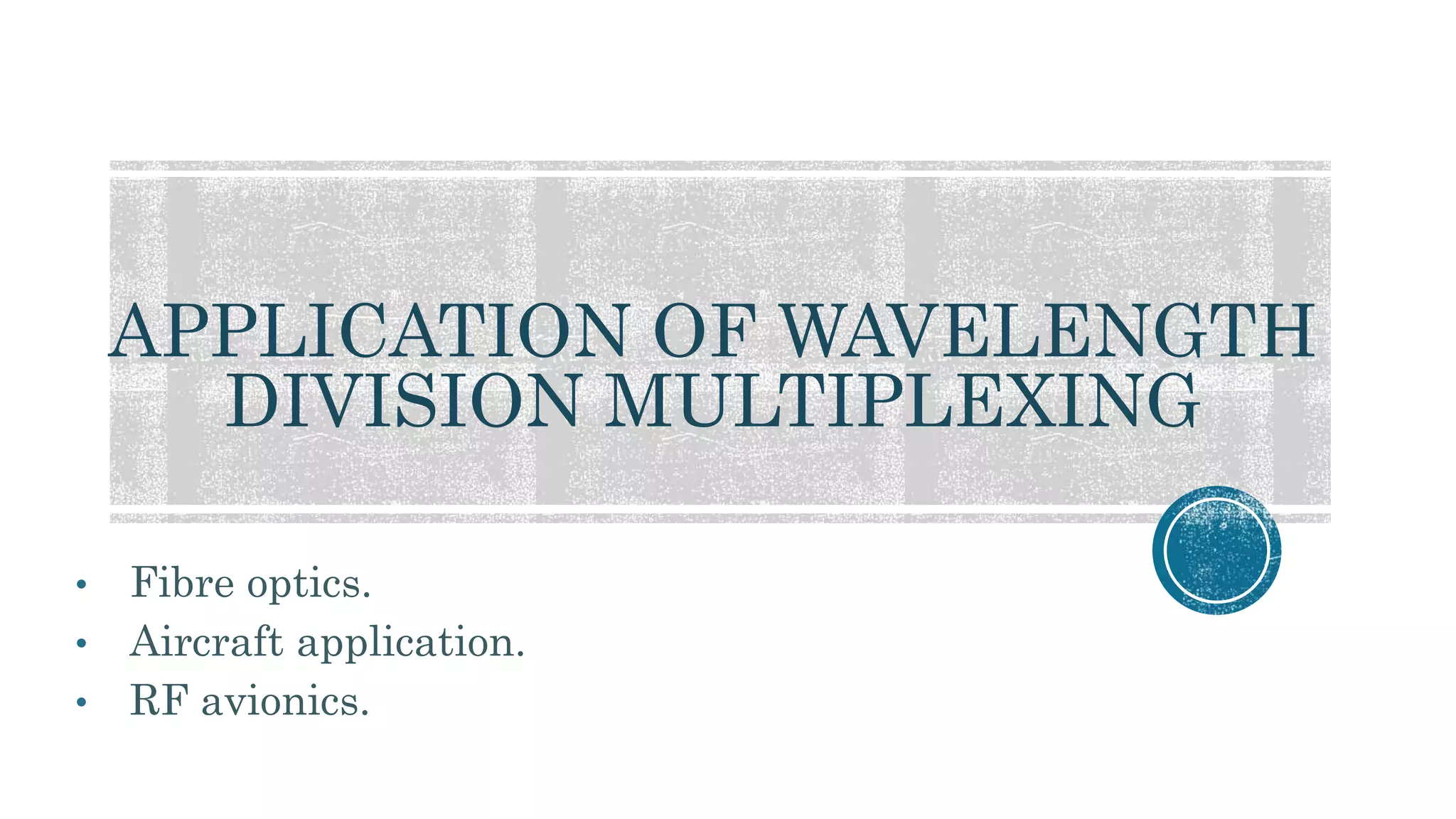 1) Fibre optics, where WDM is used to transmit multiple high-speed digital data streams over a single optical fibre by assigning each stream a dedicated wavelength of light.