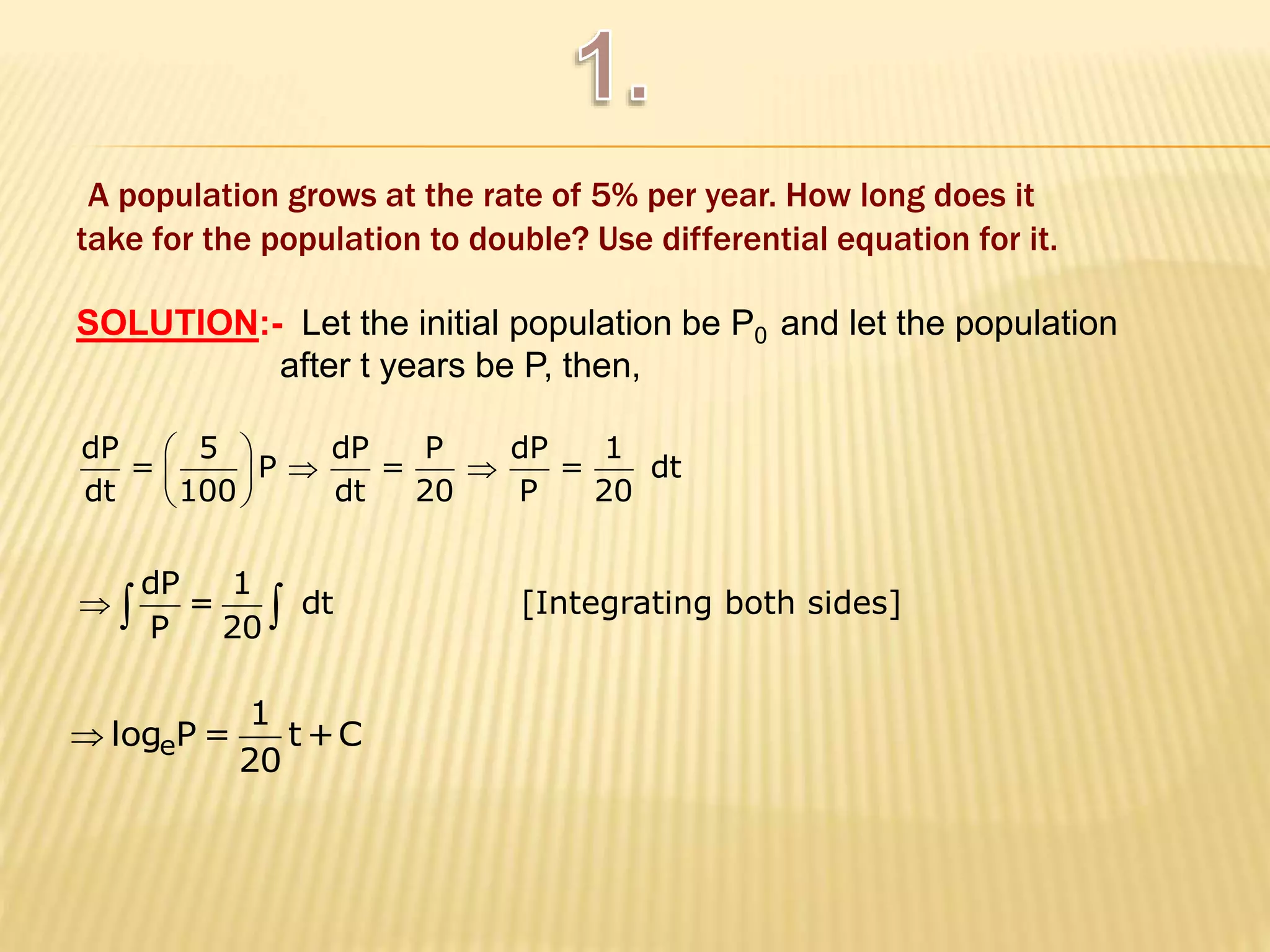 The document describes how to calculate the time it takes for a population growing at 5% annually to double in size using a differential equation model. It is also solved to be 20loge2 years, or approximately 14 years. A second problem involves calculating the final temperature of liquid in an insulated cylindrical tank over 5 days using a heat transfer model. A third problem uses kinematics equations to find how far a drag racer will travel in 8 seconds if its speed increases by 40 feet per second each second.