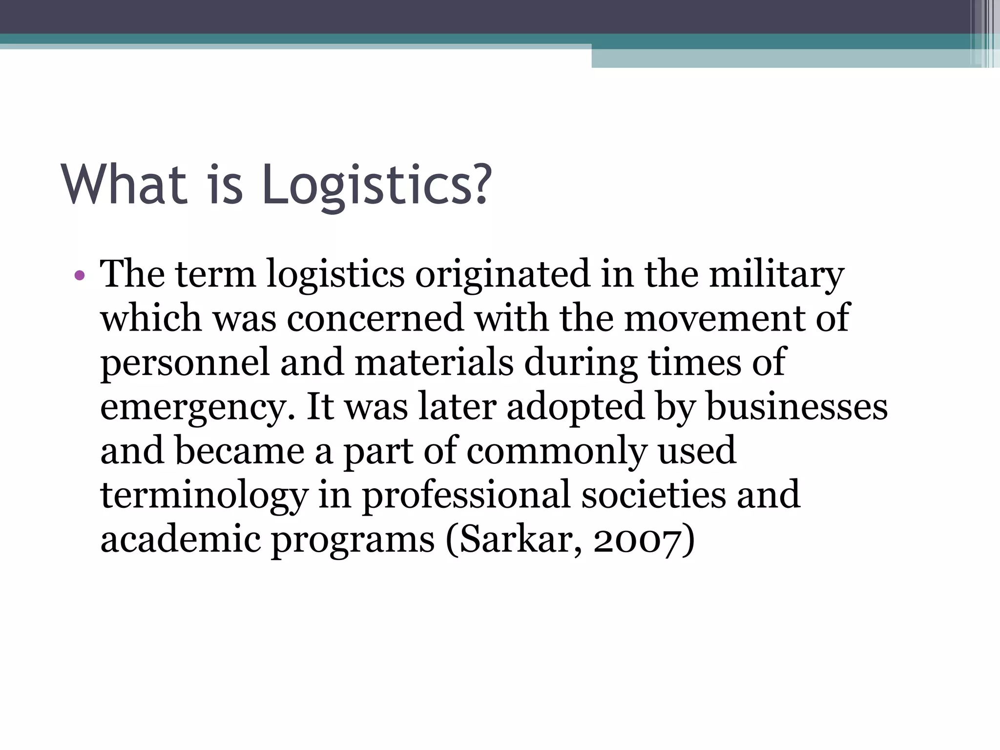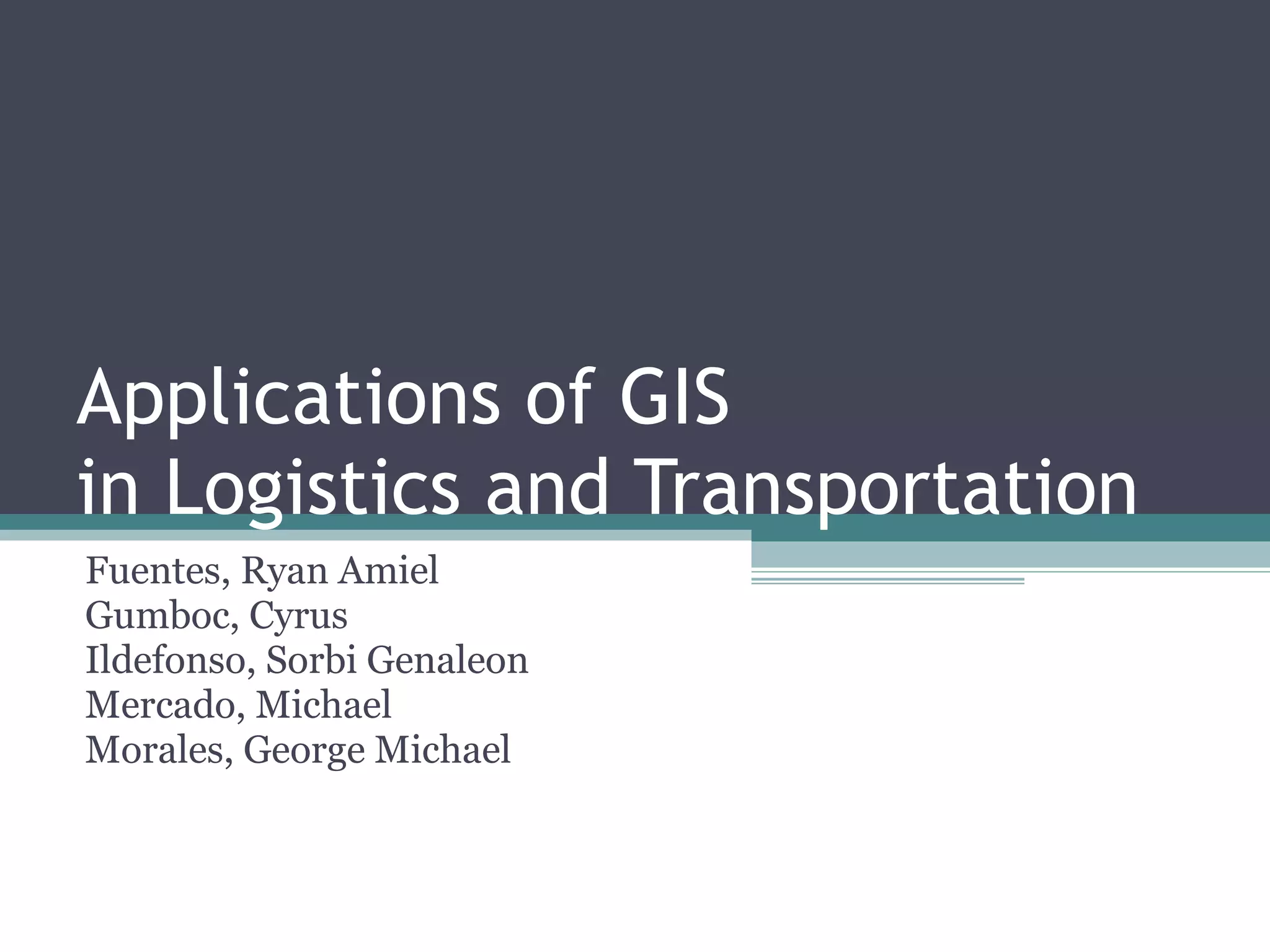1. The document discusses how GIS can be used for logistics and transportation planning, including for emergency evacuation modeling. It provides an example of a study by Tom Cova that used GIS to model evacuation vulnerability by analyzing street networks and population data.