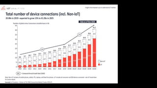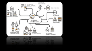 The document provides an overview of the Internet of Things (IoT) applications, including smart homes, wearables, smart cities, smart grids, and connected health, highlighting their potential to enhance everyday life and industry efficiency. It discusses the future of IoT, expected advancements in agriculture, healthcare, automotive, and defense sectors, while also addressing security challenges such as potential DDoS attacks and privacy concerns. The text emphasizes the rapid growth of the IoT market, projecting it will reach over $1 trillion by 2026, fueled by technological advancements and the integration of AI.