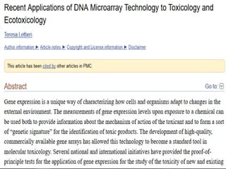 Microarrays can be used for gene expression profiling, comparative genomics, disease diagnosis, drug discovery, and toxicological research. It allows researchers to examine thousands of genes simultaneously and see changes in gene expression patterns. Microarrays have applications in areas like cancer classification, pharmacogenomics, and toxicogenomics. While a powerful tool, microarrays also have limitations like being expensive to create and requiring time to develop.
