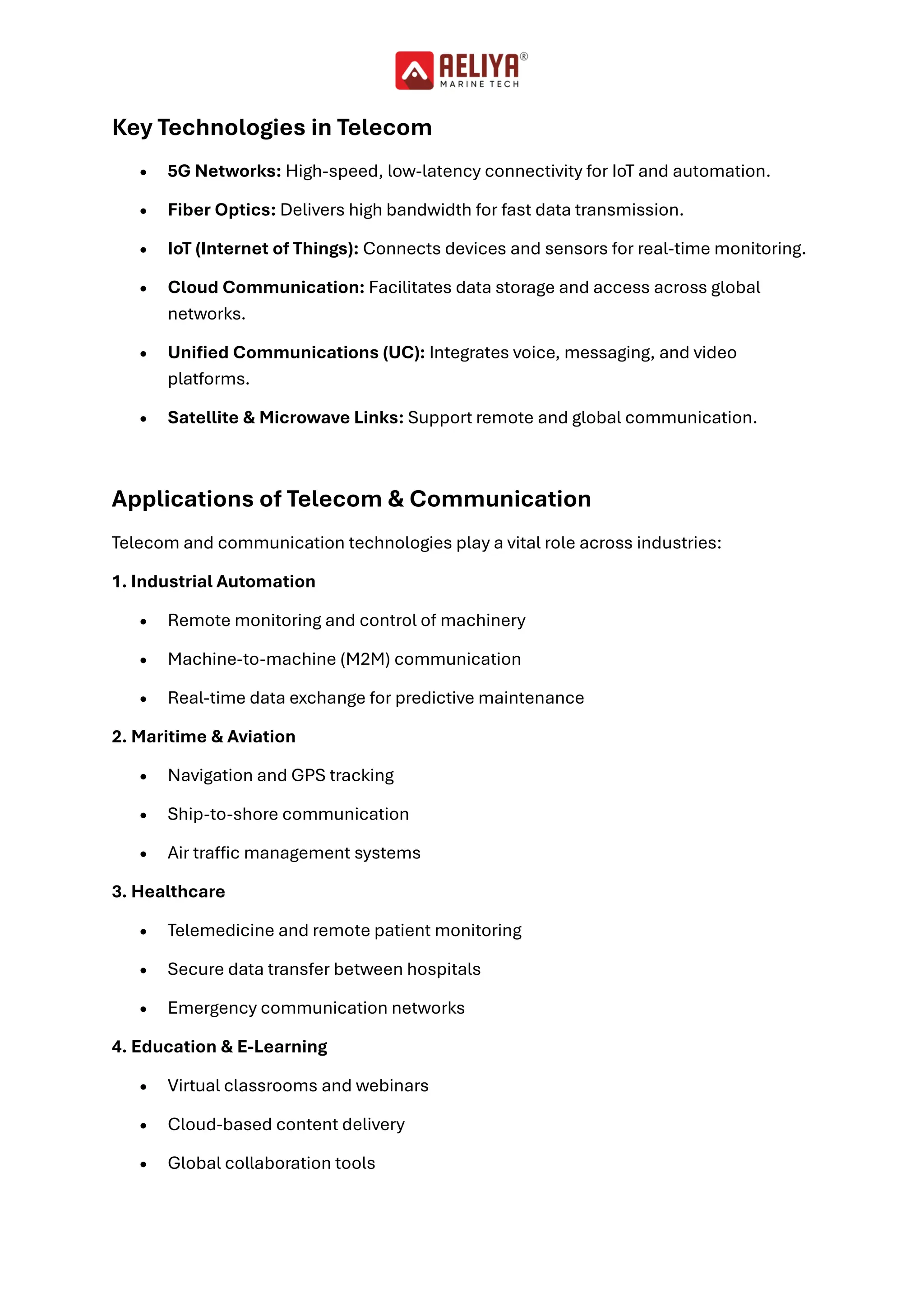 Telecom and communication technologies play a vital role across industries: