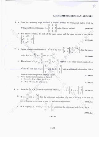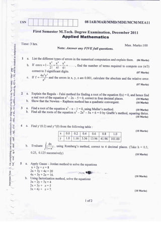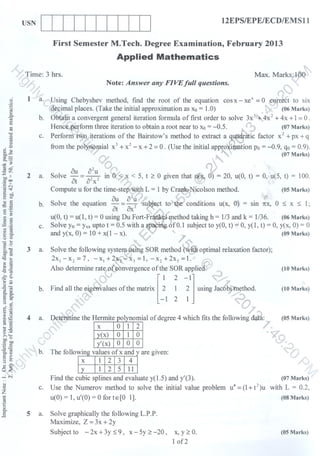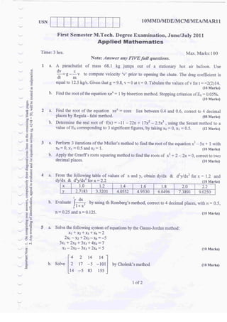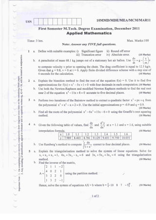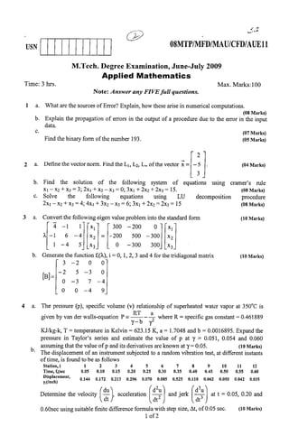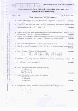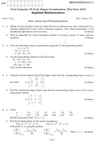 This document contains questions from a M.Tech Applied Mathematics exam. It includes questions on various topics in applied mathematics, such as: