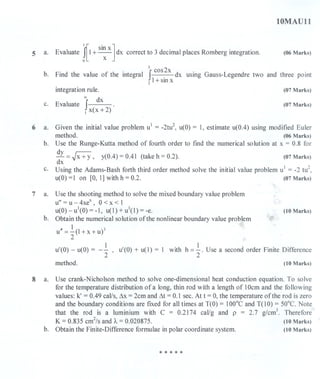 4) Solving initial value problems, the transverse deflection of beams, and using finite difference methods to solve PDEs modeling heat transfer.