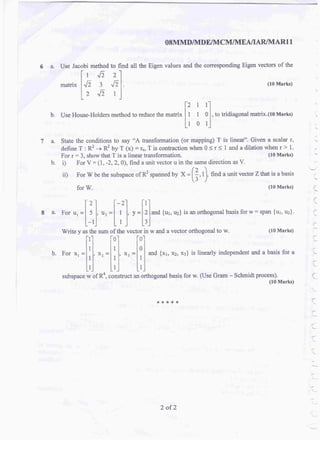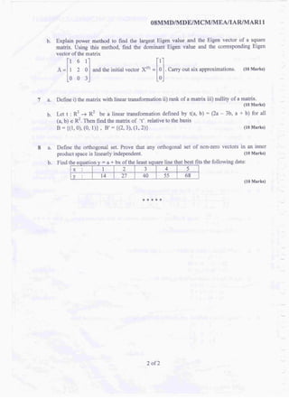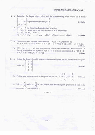 2) Solving sets of equations using Gauss elimination, finding matrix inverses, and converting eigenvalue problems.