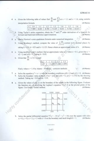 3) Evaluating mixed partial derivatives, Taylor series expansions, and numerically evaluating integrals using Simpson's rule, Gauss-Legendre quadrature, and Adams-Bashforth methods.