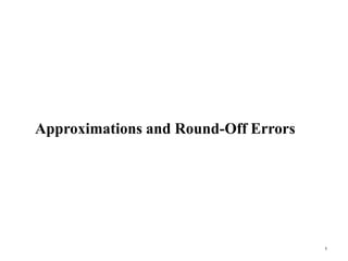 2. Numerical methods yield approximate results that may contain errors from rounding, truncation, or subtractive cancellation in calculations. It is important to determine how much error is present and if it is tolerable.